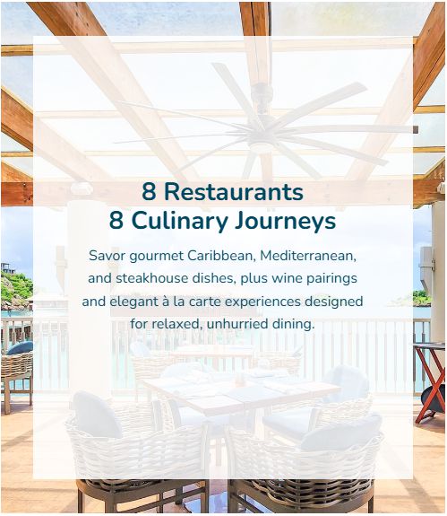 - A variety of gourmet dining options, from international cuisine to local Caribbean specialties.