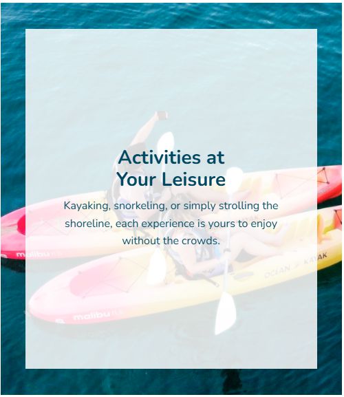 - Adventure for all ages with kayaking, snorkeling, and water sports.