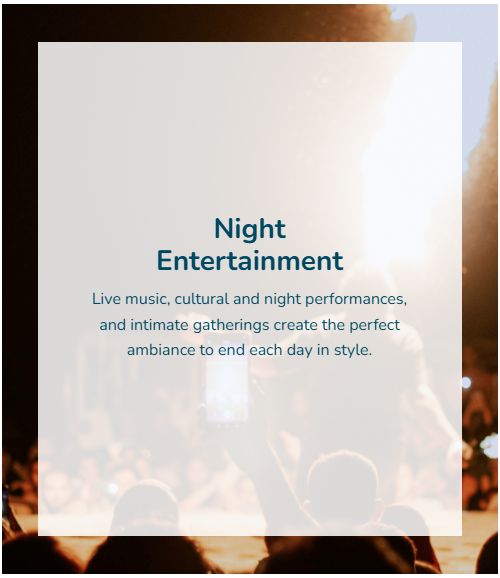 - Entertainment every night, from live shows to themed events.